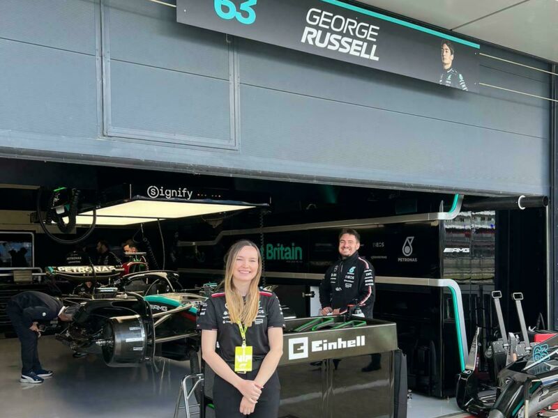 She then moved to Mercedes High Performance Powertrains where she tested and developed the Formula 1 power units before moving to the main Mercedes-AMG PETRONAS Formula 1 team in Brackley, Northamptonshire, where she now works perfecting parts for the cars that Lewis Hamilton and George Russell drive at Grand Prix races around the world.